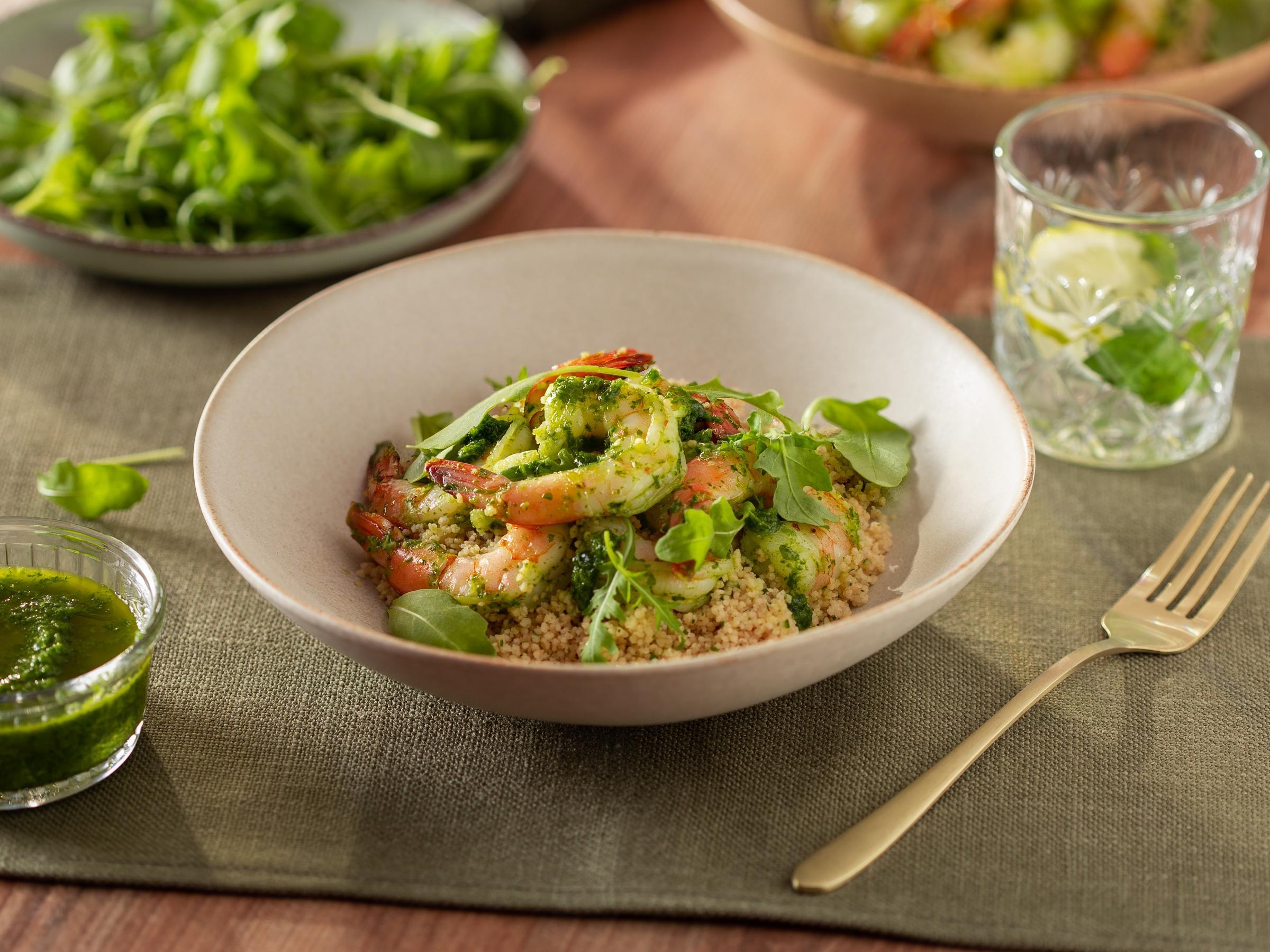 Garnalen met groene couscous